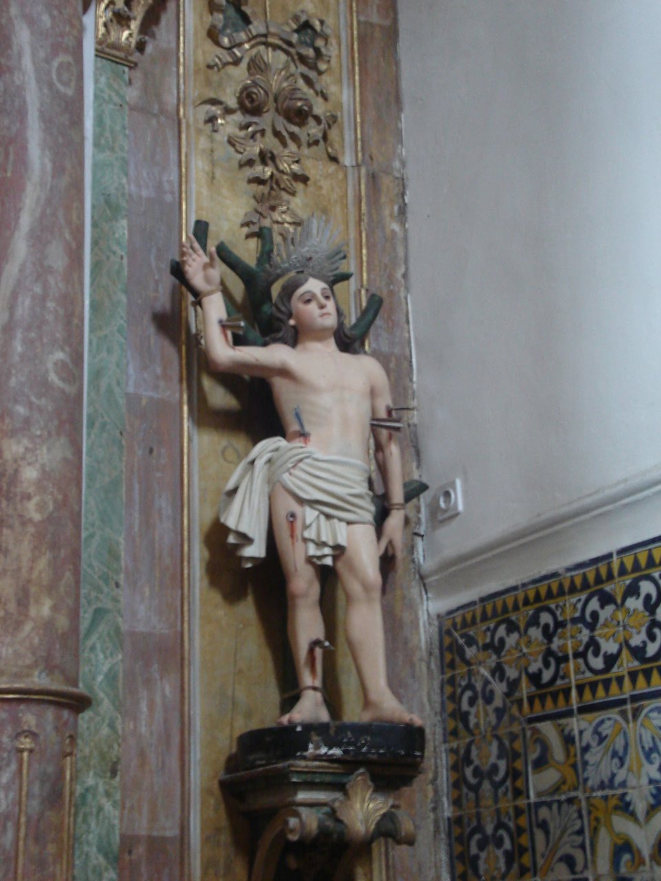 Na Igreja encontram-se esculturas de santos barrocos onde a iconografia sacra, severamente vigiada pelo Tribunal do Santo Ofício, se baseia numa nova ortodoxia dos temas sagrados, preferindo a vida de santos mártires, como São Marcos Evangelista, onde se encontra entre duas naves laterais da direita, São Sebastião da Pedreira que se encontra numa nave lateral esquerda, entre outros.