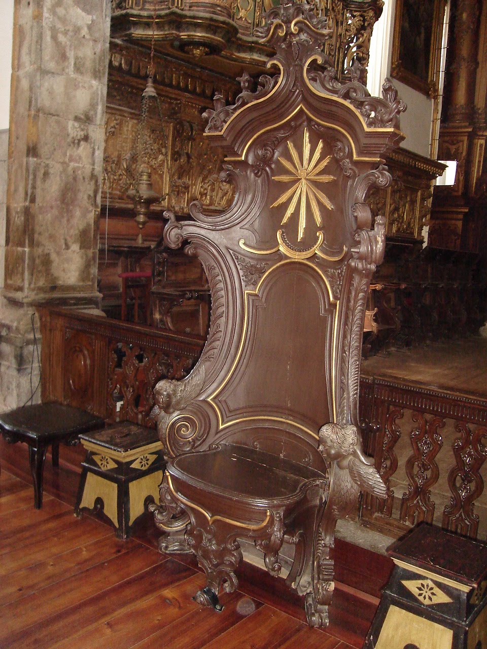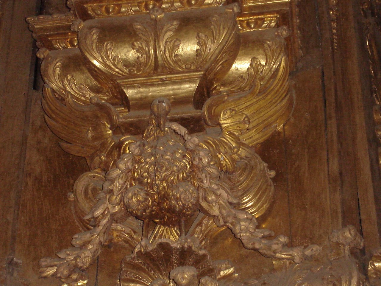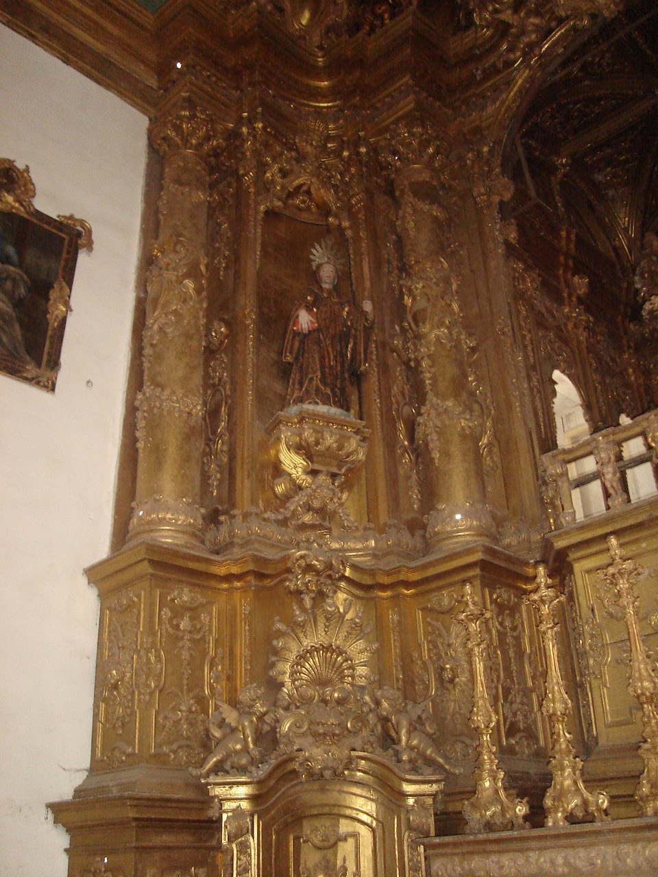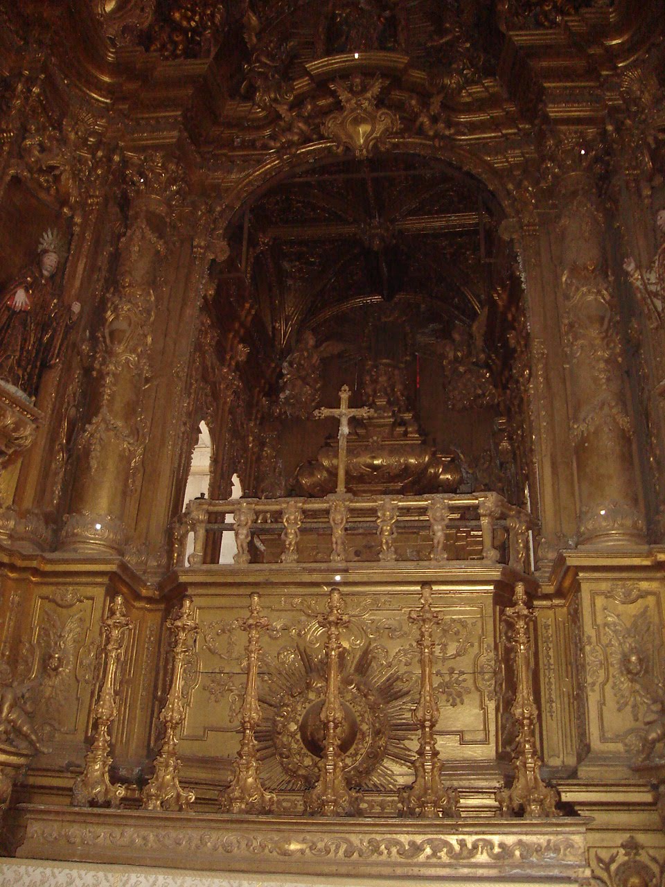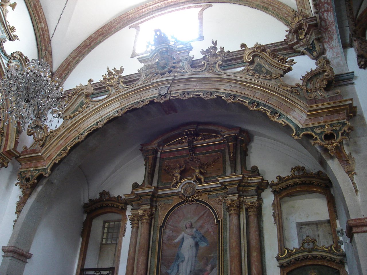 O altar é revestido pela magnífica talha dourada dando destaque ao jogo de volumes.