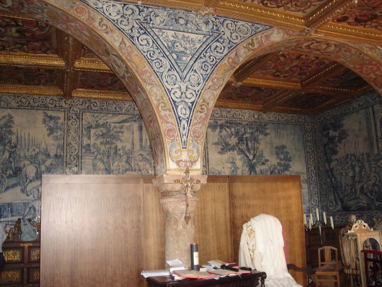 As janelas desempenham um papel fundamental para a entrada da luminosidade do Sol. As paredes e os tectos são estucados e compostos por organizações côncavas e convexas. O tecto é composto por “abóbada” de madeira.