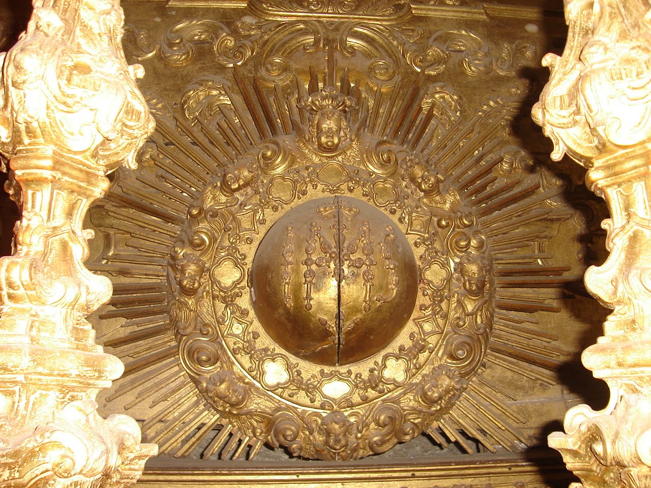 Na parte inferior central apresenta-se o mundo que destaca a concepção teocêntrica. Aí é guardado o cálice com as respectivas hóstias da missa.