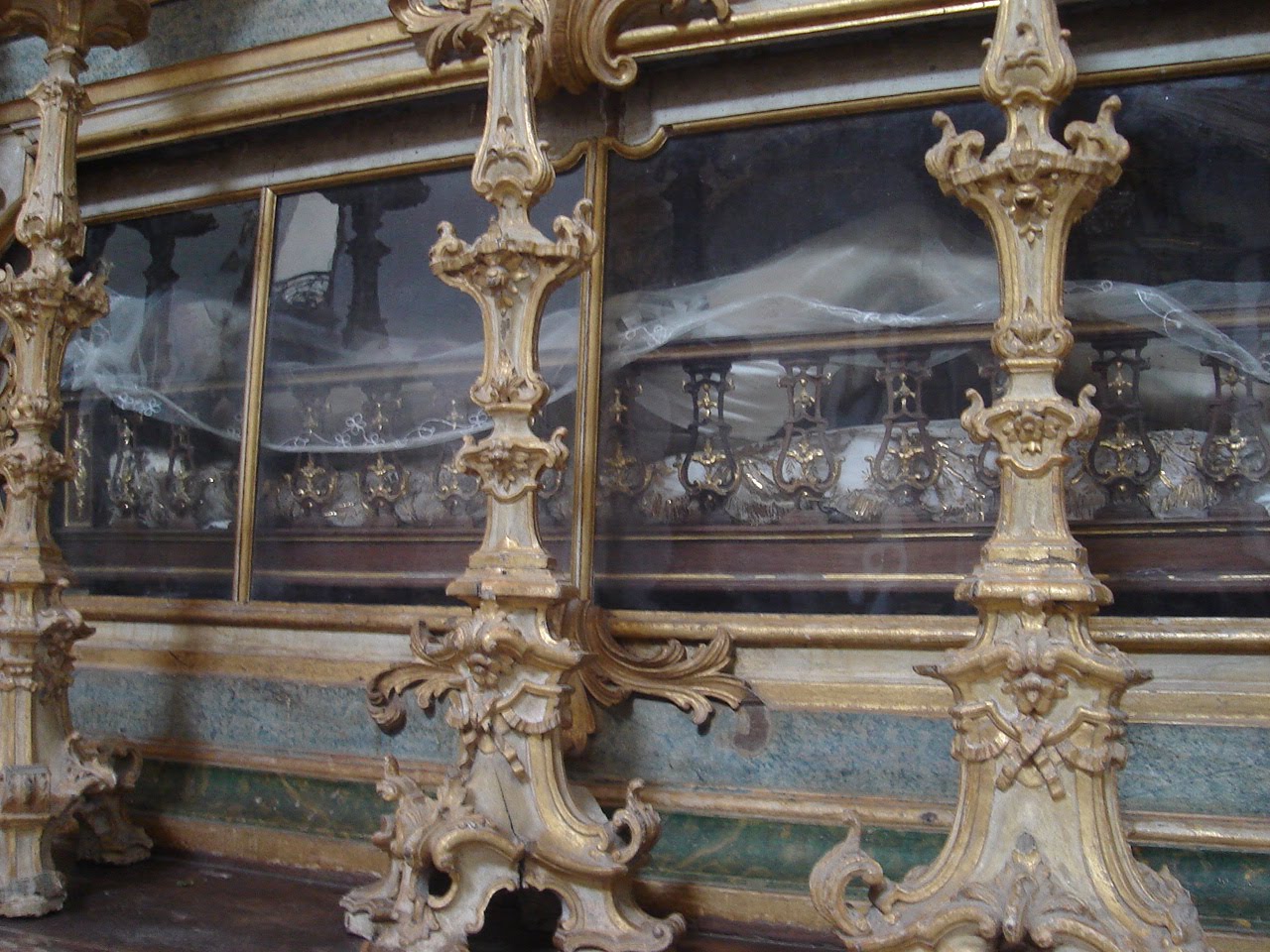 Na parte inferior da mesma nave encontra-se o Senhor morto. Aliás, ao longo de toda a igreja, presenciam-se várias imagens que retratam o sofrimento e a morte num contraste entre a vida e a morte.