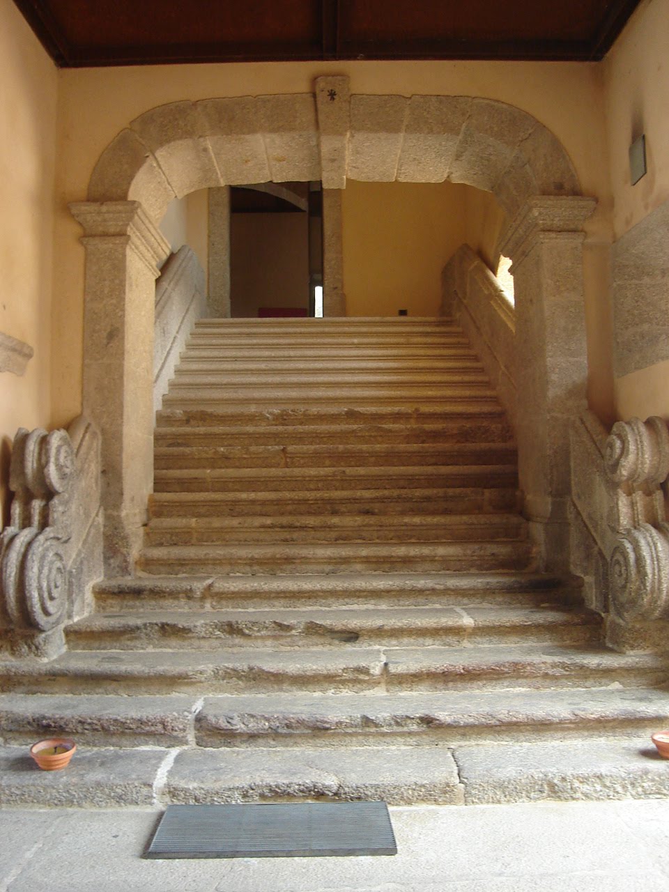 A entrada do primeiro piso é marcada com uma grande escadaria de granito que dá acesso ao segundo piso.